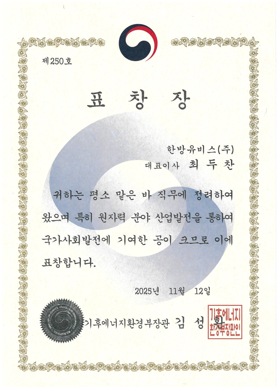 기후에너지환경부장관 표창(제250호)